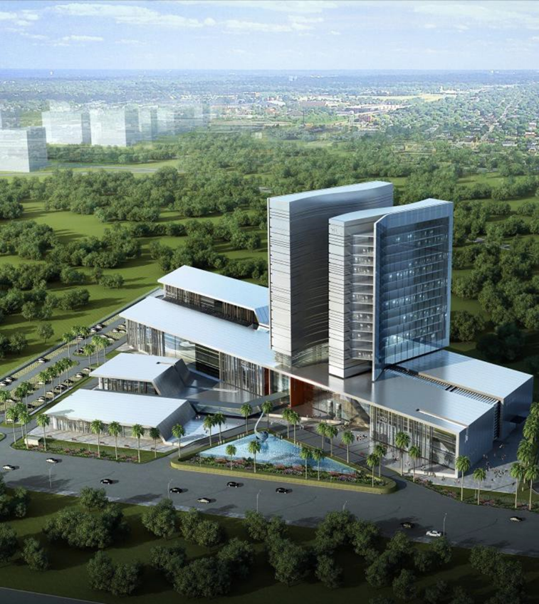 Additional work: 82,500 m2 asphalted roads, 46,000 m2 walkways, 40,500 m2 garages. Landscaping university area with fountains, lakes, gardens, and main & secondary gates with fences.